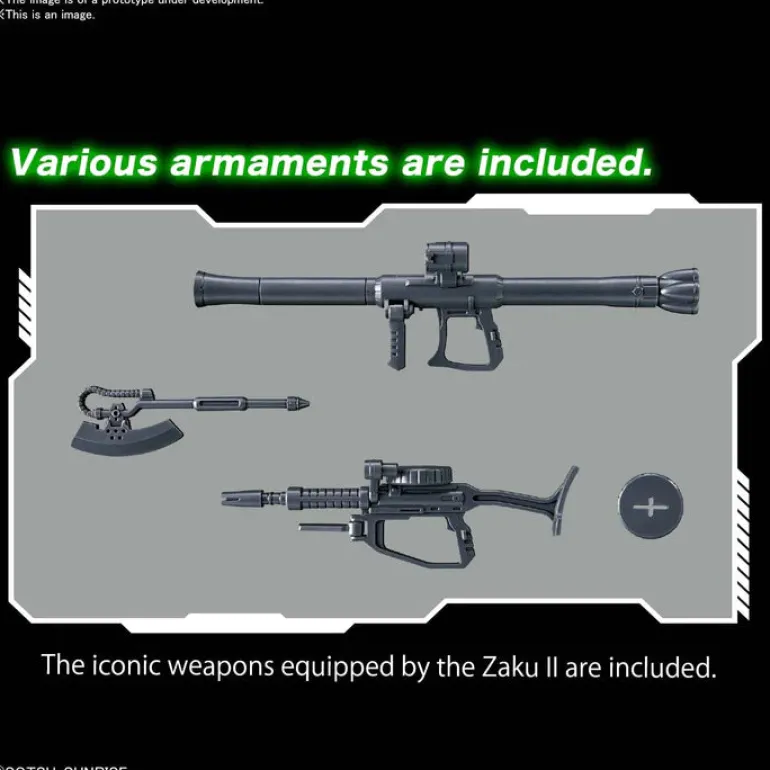 Based on the Mobile Suit Gundam anime series, this MS-06 Zaku II model kit is in 1/144 scale and becomes a fully articulated figure once built.