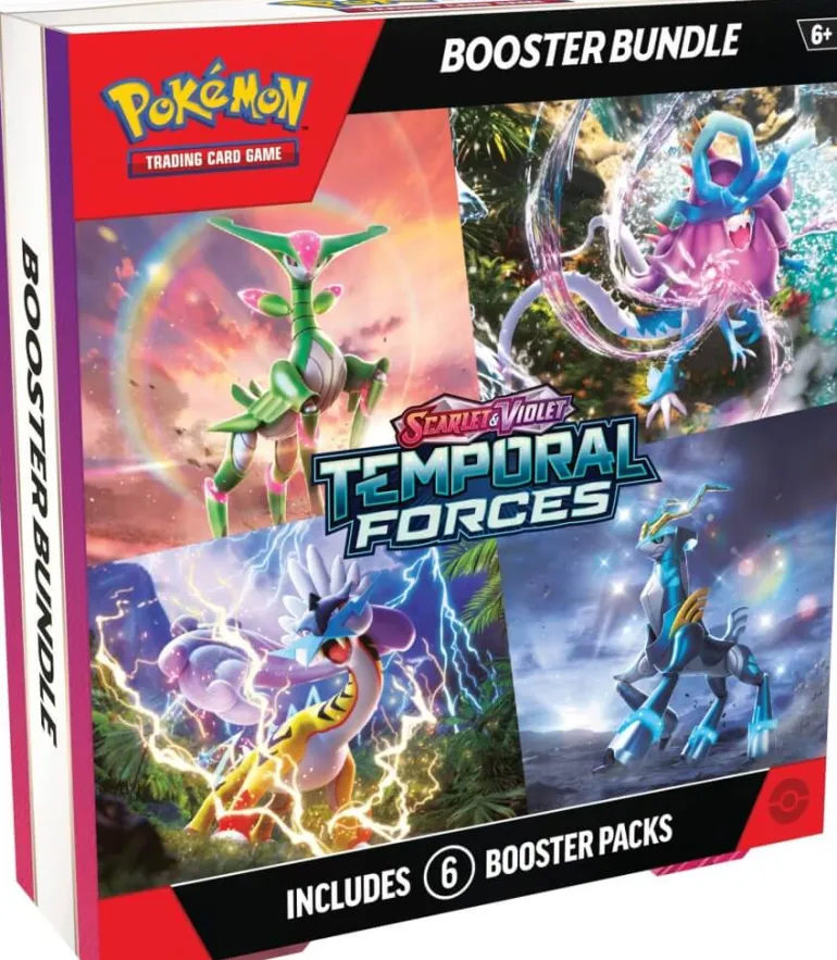 Expand your collection with this Booster Bundle containing six booster pack s from Pokémon TCG: Scarlet & Violet—Temporal Forces!