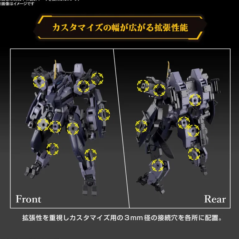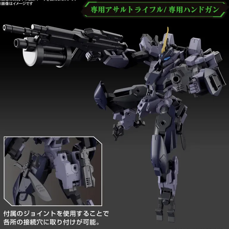 The HG MAILeS Photo Gouyou from “Kyoukai Senki” joins the HG model-kit lineup from Bandai! Highly posable after assembly, it’s loaded with 3mm-diameter ports for customization; you can combine it with items from the separately sold Weapon Set series to create your own heavily-armored mech! Various weapons such as a machete, special assault rifle, special handgun, and dagger are included. The dagger blades are removable, and can be stored in the armor behind the knee; in addition, the head can be displayed either deployed or retracted.