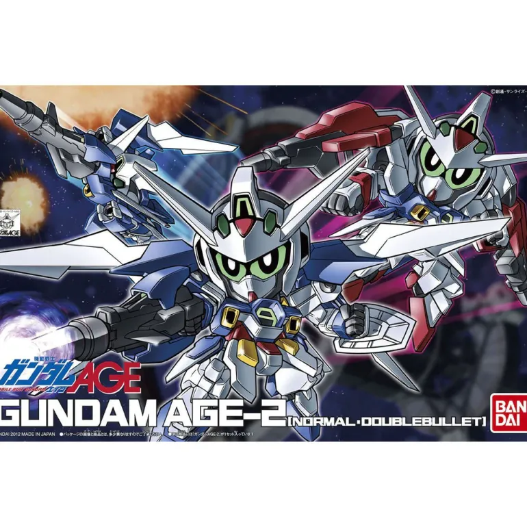 BB371 Bandai’s Super Deformed SD AGE-2 GUNDAM AGE-1 NORMAL / DOUBLE BULLET ! This cool set comes with the SD AGE-2 Gundam which you can build as the Normal or the Double Bullet and includes foil markings stickers with extras for the eyes and a stand to hold the transformed versions.