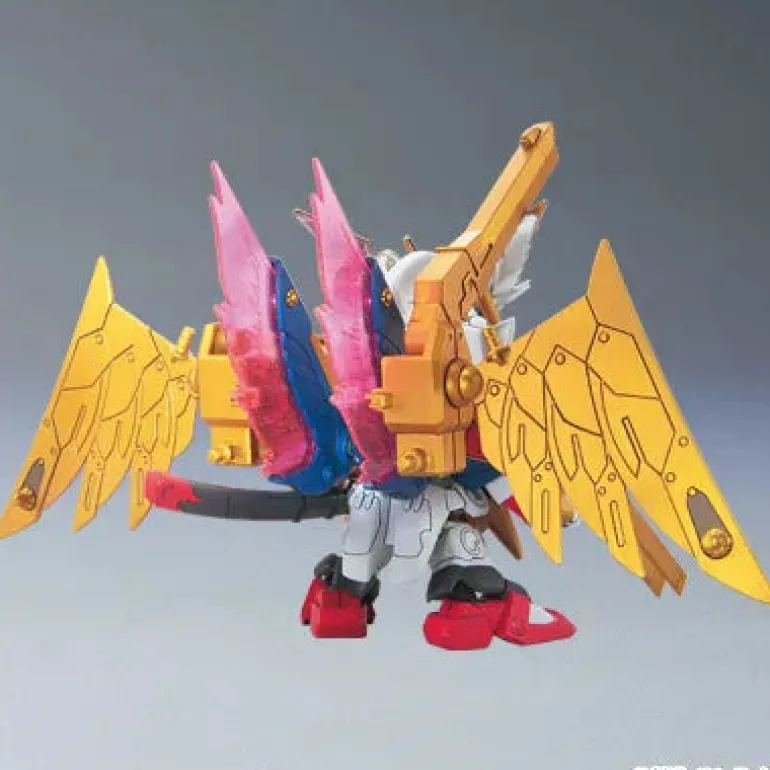 This kit packs quite a punch for a BB Gundam. Musha Victory is equipped with more accessories than you can shake a stick at! The beam wings are made with parts molded in glittering transluscent plastic, and antenna pieces molded in shining, metallic gold! Snap on more gold parts for a hulking look for a BB Gundam, including not only armor pieces but also wings, mega beam rifle, mega beam buster, and hawk armor.