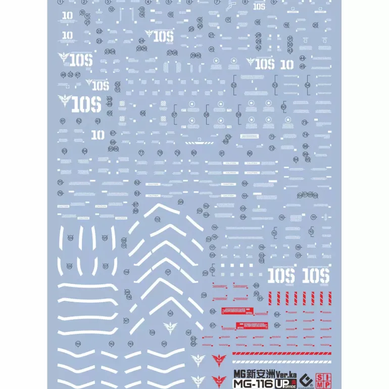 These are high-quality water-slide decals to add custom markings to your 1/100 scale MG Sinanju OVA Ver.KA.