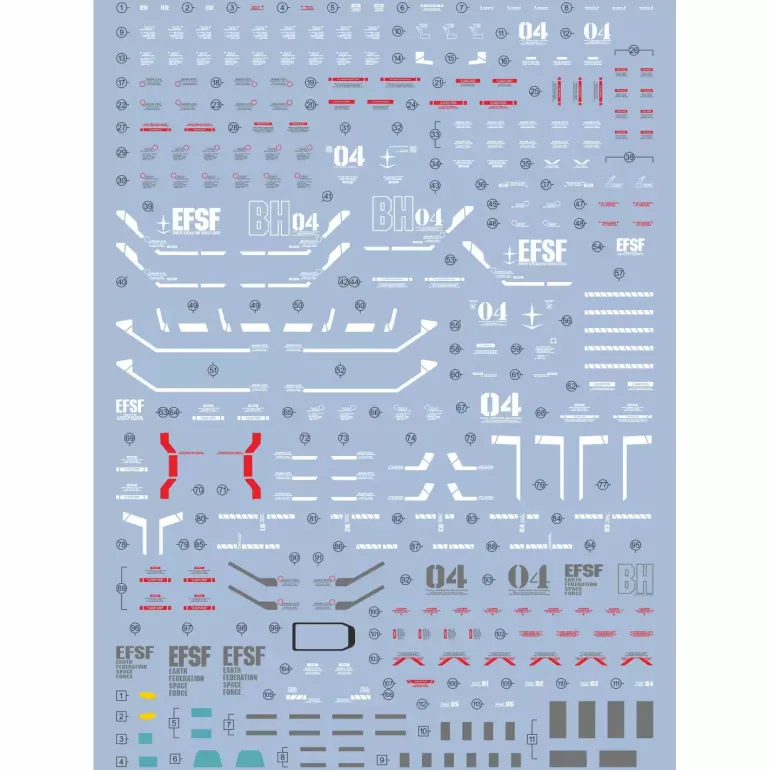 These are high-quality water-slide decals to add custom markings to your 1/100 scale MG FULL ARMOR GUNDAM VER.KA [GUNDAM THUNDERBOLT].