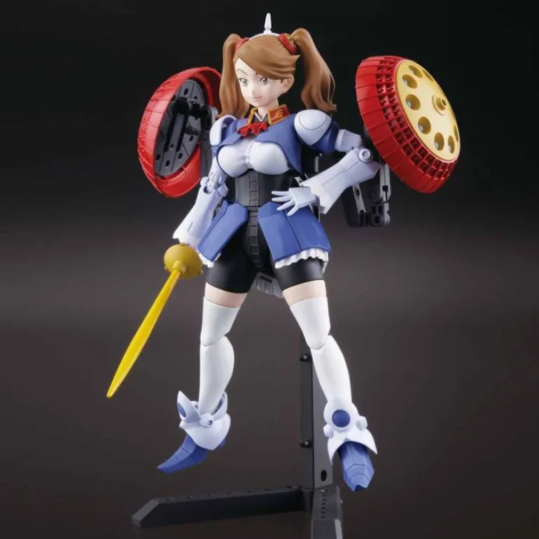 Sazaki Kaoruko from “Gundam Build Fighters Try” joins the High Grade Build Fighter lineup from Bandai in her Hyper-Gyanko identity! She’s got two facial expressions–one with her eyes looking straight ahead, and the other looking left, both with a sly sort of smile. She’ll be fully posable after assembly and is armed with two shields and two beam sabers. A base is included too, and stickers are included for details.