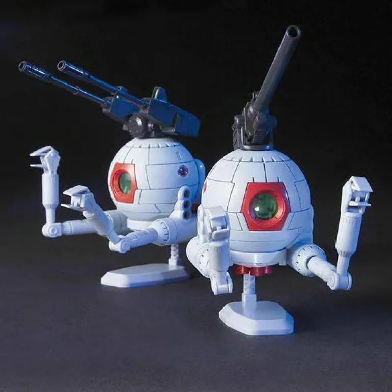 The latest HGUC release from Bandai gives you two identical RB-79 Balls (EFSF Mass-Produced Mid-Range Support Mobile Pods), both with 180mm cannons or twin guns that you can switch in and out, and the arms are articulated as well.