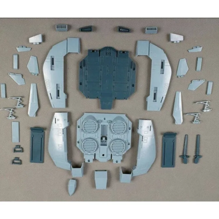- It is able to mount to a Bandai action base or can stand on its own thanks to included landing gear parts