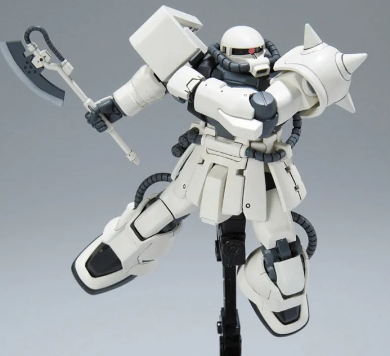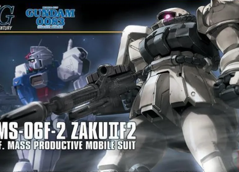 Based on the Mobile Suit Gundam 0083: Stardust Memory anime, this MS-06F2 Zaku II F2 (Earth Federation Type) model kit is in the 1/144 scale and becomes a fully articulated figure once built. Accessories include the 120mm Zaku machine gun, 90mm machine gun, Heat Hawk, and missile pods.