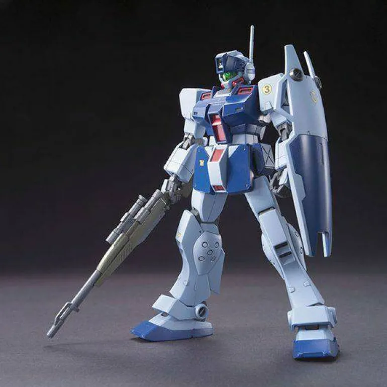 This model kit of the GM Sniper II, from Mobile Suit Gundam 0080, stands in 1/144 scale and becomes a fully articulated figure once built.