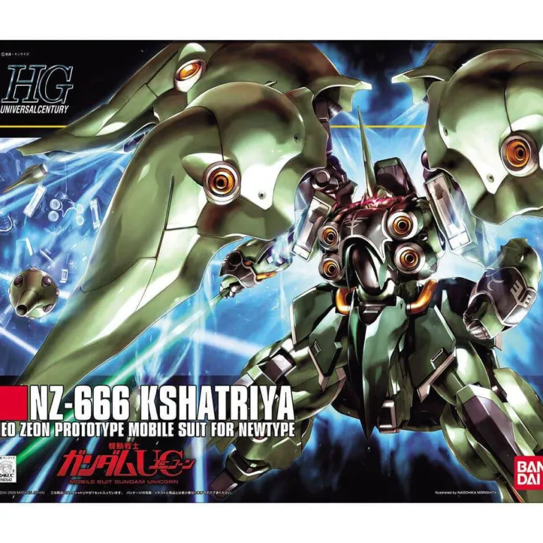 Based on the Mobile Suit Gundam Unicorn anime, this Kshatriya model kit is in the 1/144 scale and becomes a fully articulated figure once built. This model kits features four moveable binders, twenty-four funnels with flexible arms and two beam sabers.