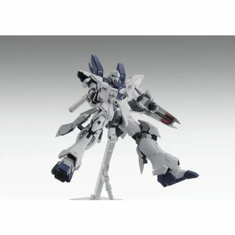 A Mobile Suit Variation of the Sinanju from the Playstation 3 game “Gundam UC,” this white themed prototype Sinanju is based on the previously released MG Sinanju Ver. Ka frame with enhancements including the new Emotion Manipulator hands, which allows expressive individual finger and hand gestures as well as new weapon locking tabs. Featuring over 15 new runners of parts, Sinanju Stein comes with exclusive beam rifle and bazooka as well as a shield with integrated beam cannon and missiles. Beam saber racks on the forearms slide open and close while leg mounted thrusters can swivel.