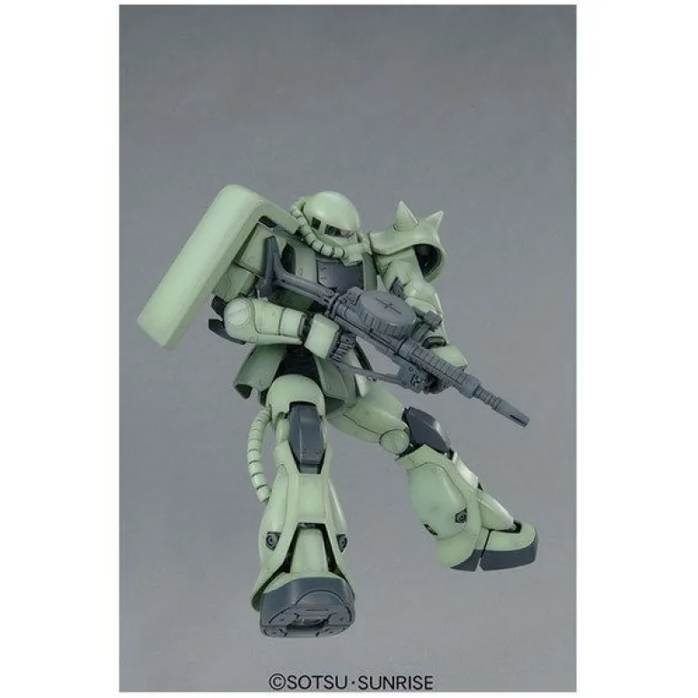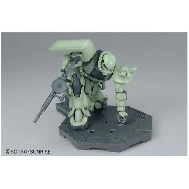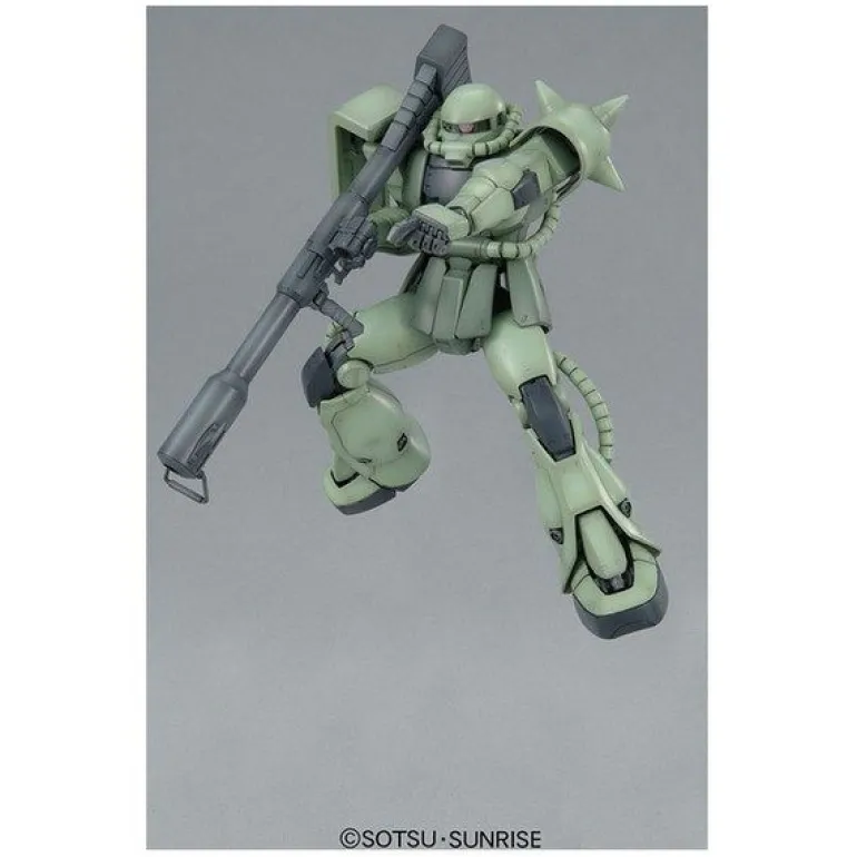 Over a decade since the first MG Zaku II kit release and several MG Zaku II variations later, this Zeon MS finally gets the “Ver. 2.0” treatment with a completely revamped inner frame construction that allows for even greater range of articulation and realistic movements–you can even pose it kneeling on one leg as seen in the show! Aside from the improved articulation, one of the major features of this kit is the incredible new molding process that has two different sections of the pipes molded together for easy slide assembly. Weapons include a Zaku machine gun, Zaku bazooka, heat hawk, and a pair of three-tube missile pods. Two types of blade antennas are thoughtfully included if you plan on building a Zaku II commander mass production type MS, plus two 1/100-scale pilot figures are also provided to man the MS.