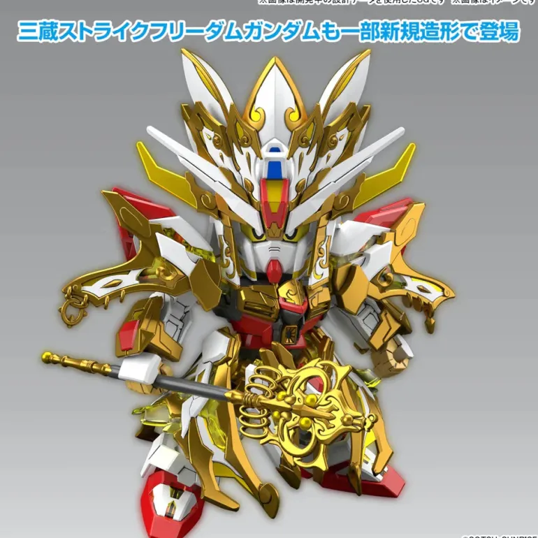 Goku Impulse Gundam is a completely new model, and the Sanzang Strike Freedom Gundam is partly new; he’s armed with a cane. Golden and clear molded parts are included to express the high-density details of these two adorable yet very ornate mecha.