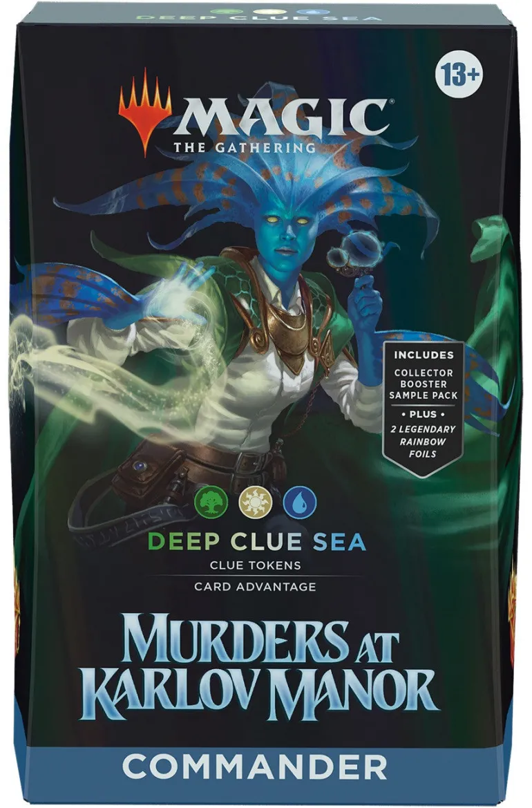- COLLECT SPECIAL TREATMENT CARDS—Each deck also comes with a 2-card Collector Booster Sample Pack containing 2 alt-border cards from the Murders at Karlov Manor set, including 1 Rare or Mythic Rare and at least 1 Traditional Foil card