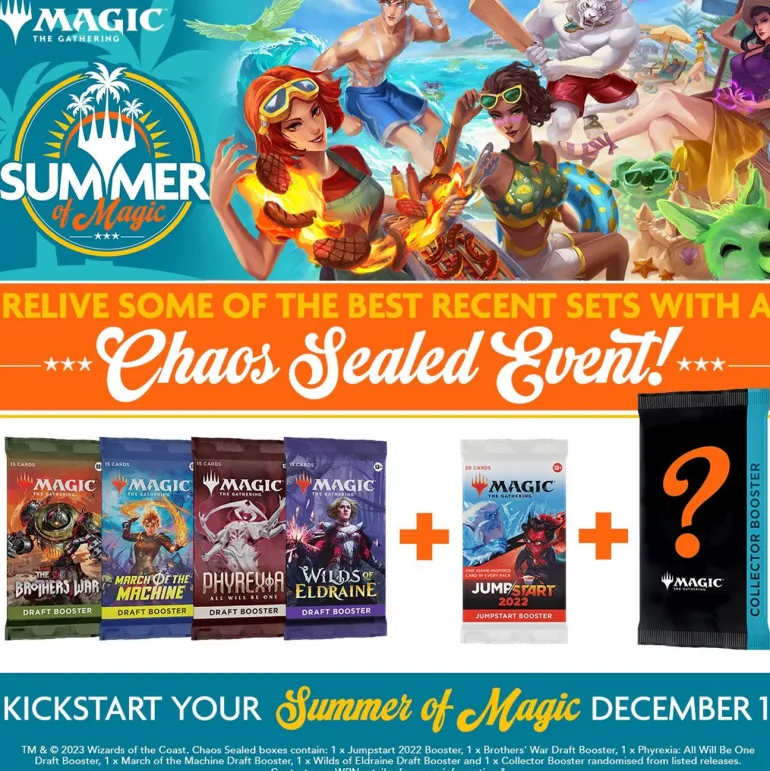 To kick off the Summer of Magic on December 1, there will be a Chaos sealed event you can participate in to launch the Summer of Magic Season. The Chaos sealed packs will be allocated to WPN stores.