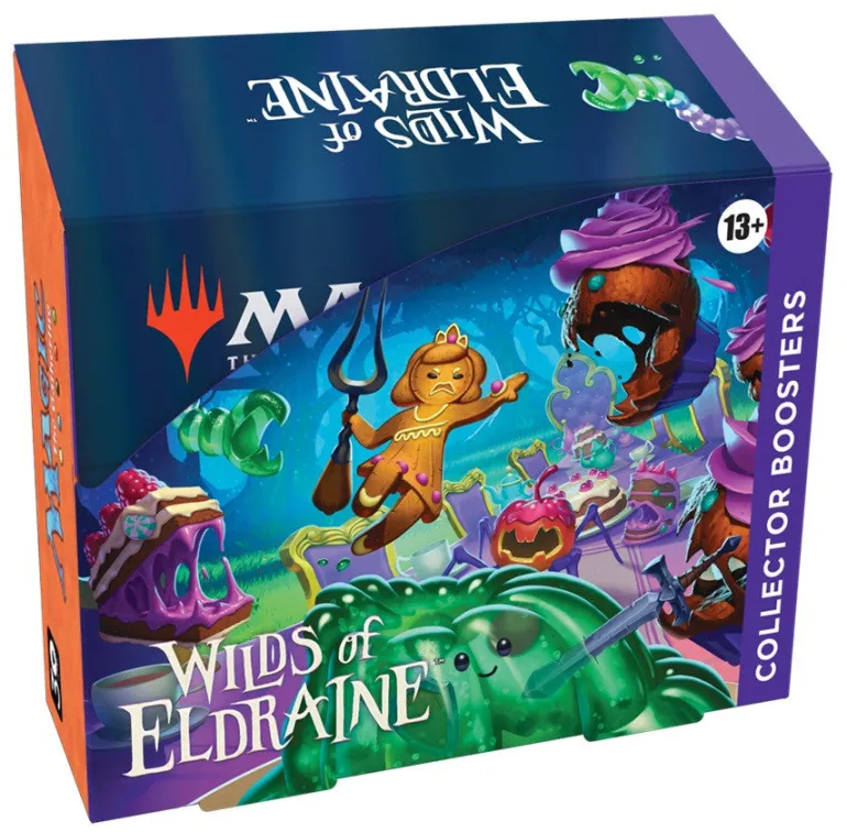 Hot and fresh out of the oven, this batch of Collector Boosters is a feast fit for a royal! Along with the guaranteed Rares, Traditional Foils, and Extended-Art card, these boosters contain at least 3 special Borderless cards to spice things up. Compliments to the chef—your deck has never looked this good at the table. This Wilds of Eldraine Collector Booster Box contains 12 Wilds of Eldraine Collector Boosters. Each Collector Booster contains 15 Magic: The Gathering cards and 1 Traditional Foil double-sided token, with a combination of 5 cards of rarity Rare or higher, 5 Uncommon, 4 Common, and 1 Full-Art Land cards. Every pack contains a total of 10–12 Traditional Foil cards.