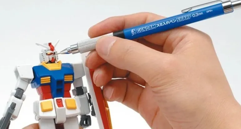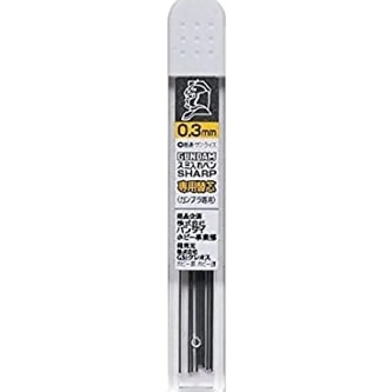 Here’s a plastic case of 10 0.3mm replacement leads for use with the Gundam Marker mechanical pencil SHARP, linked below.