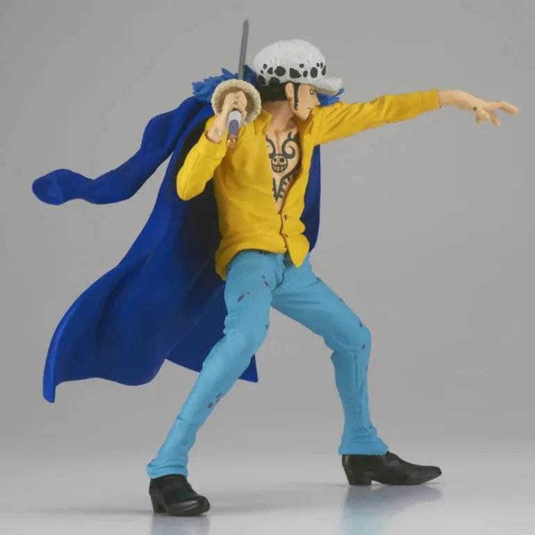 From the One Piece anime series comes a figure of Trafalgar Law, as part of the Battle Record Collection series of figures. Trafalgar Law stands around 6 inches tall and is in a battle-ready position with weapon in hand.