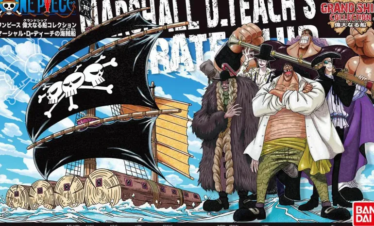 Marshal D. Teach’s Pirate ship and the rest of Bandai’s Grand Ship Collection make an excellent choice for modelers of any skill level to express their love for the series. This model ship is unlike any traditional model ship you’d find on the shelves of your local hobby shop, as Marshal D. Teach’s Pirate ship is a snap-build kit made for assembly without any tools required! Bandai designed each part to pop right off the runner without any nippers, and they included a thorough sheet of color-correcting stickers for a great display piece right out of the box. The lower hull of Marshal D. Teach’s Pirate ship easily separates from the rest of the ship, allowing builders to choose between displaying the ship in its entirety or just what’s above water level!