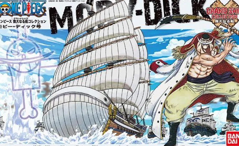 The Moby Dick ship, based on its appearance in the popular One Piece anime series, is part of the One Piece Great Ship Collection model kit lineup! With awesome details and an effects base that allows this model to appear to be zooming through the seas, this ship will make a great addition to your One Piece collection!