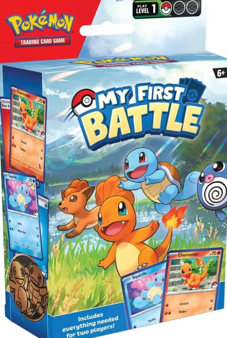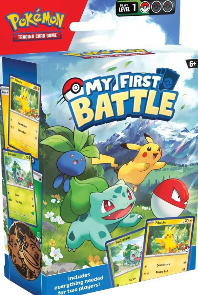 If you’ve always wanted to play the Pokémon Trading Card Game with family and friends, the Pokémon TCG: My First Battle set is the perfect introduction. With a streamlined game and foolproof guidance, you’ll be ready to train and battle together. Everything you need for two players is included!