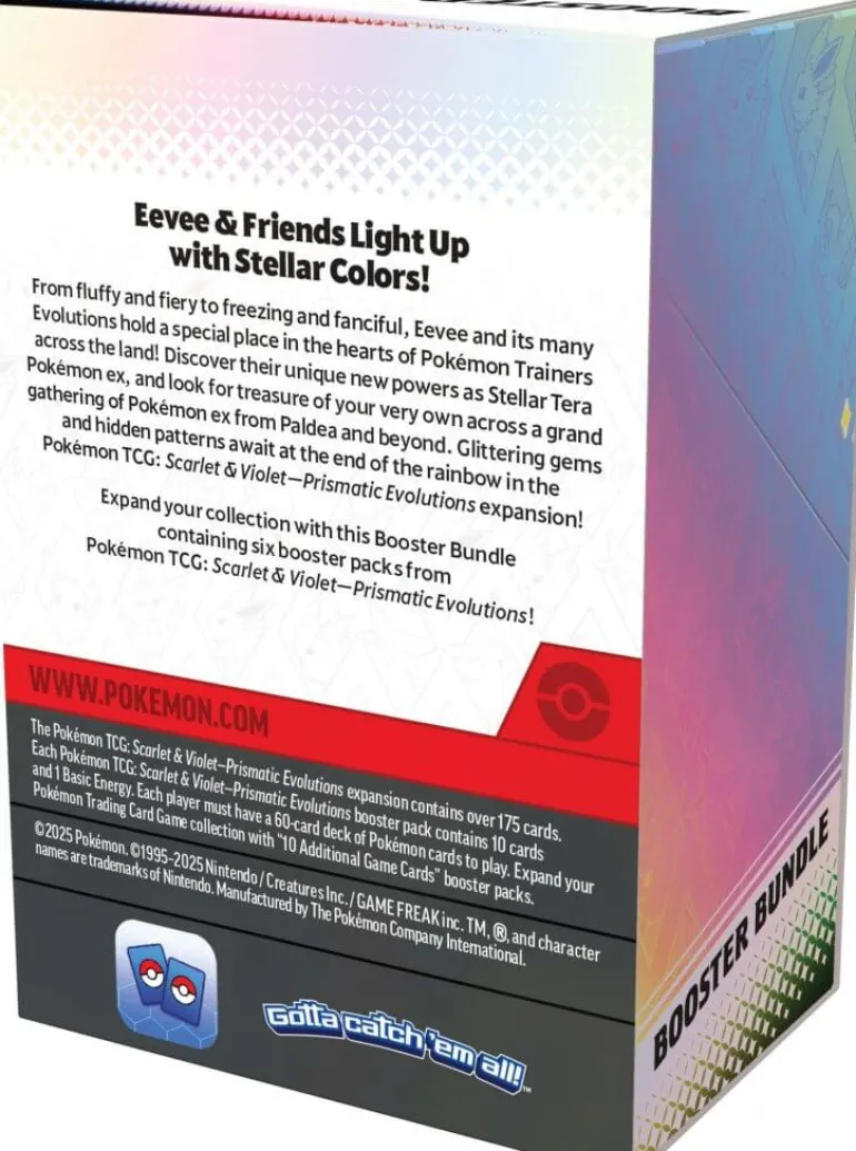 Expand your collection with this Booster Bundle containing six booster packs from Pokémon TCG: Scarlet & Violet—Prismatic Evolutions!