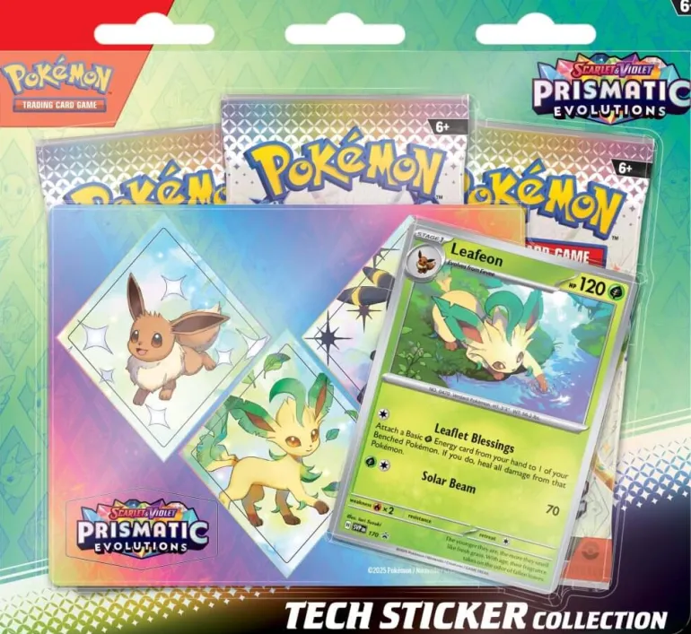The Pokémon TCG: Scarlet & Violet—Prismatic Evolutions Tech Sticker Collection includes: