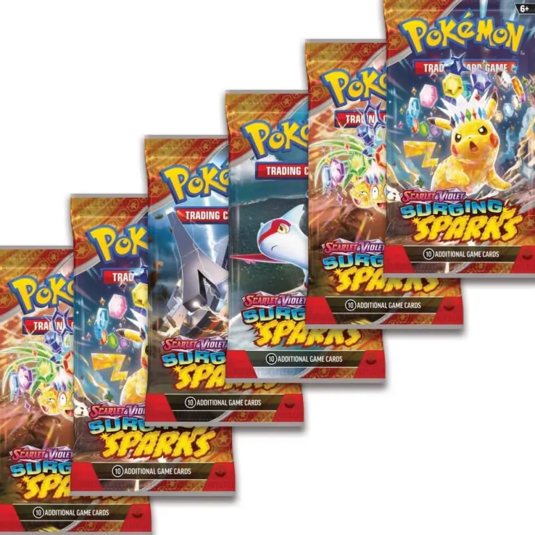 Expand your collection with this Booster Bundle containing six booster packs from Pokémon TCG: Scarlet & Violet 8 – Surging Sparks