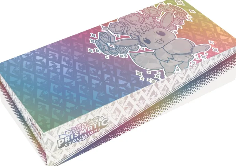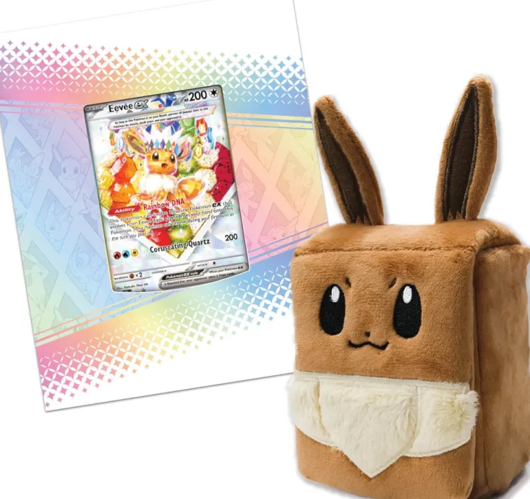 Eevee and its Evolutions spread friendship and joy everywhere they go, and with the adorable accessories in this collection, they’re sure to bring that same happiness to your next big game! Inside, you’ll find a special illustration rare-style promo card featuring Eevee as a Stellar Tera Pokémon ex, ready to evolve thanks to its Rainbow DNA. You also get a fuzzy Eevee deck box, a playmat and full set of card sleeves featuring amazing artwork of Eevee and its Evolutions, and more than a dozen booster packs from the special Scarlet & Violet—Prismatic Evolutions expansion.