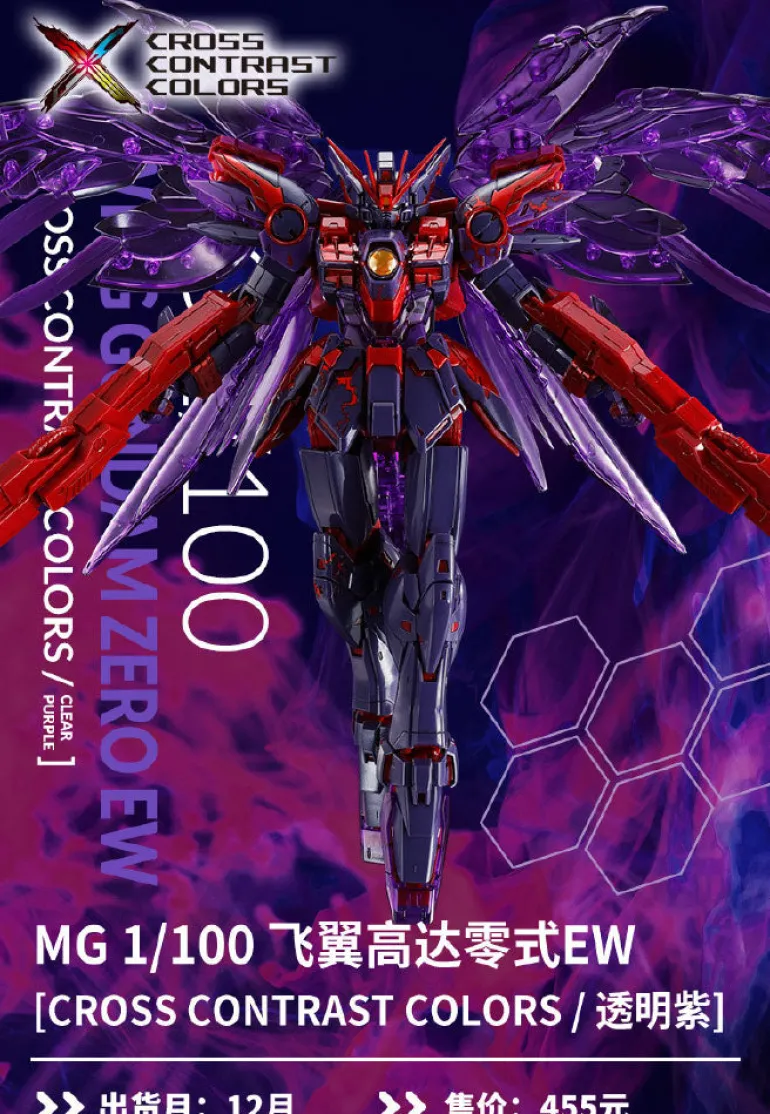 The set MG 1/100 Wing Gundam Zero EW Ver. Ka (Cross Contrast Color / Clear Purple) contains: