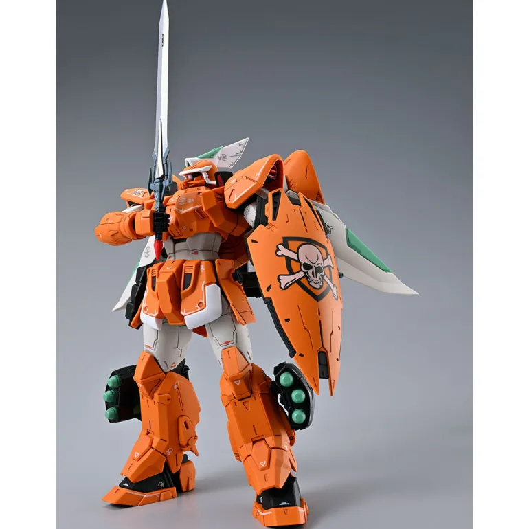 The ZGMF-1017 Aiman’s GINN, also known as the ZGMF-1017 GINN [Aiman’s Custom], is a unique variation in the Mobile Suit Gundam SEED MSV series. This mobile suit belongs to the ZAFT pilot Miguel Aiman, a member of the Le Creuset Team and known as the “Magic Bullet of Dusk.” The custom GINN is prominently displayed in Aiman’s characteristic orange color scheme, highlighting his piloting skills.