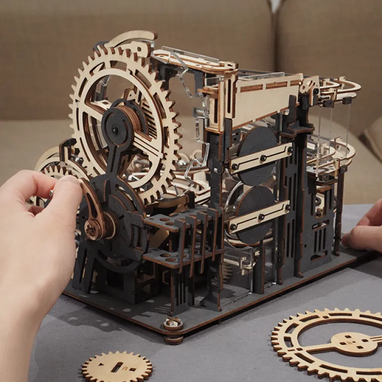 At the beginning of the design, for the new model of the “mechanical city track” series, it determined that based on expanding a specific playing method, we should retain the complex mechanical structure of the series, which can act as a tabletop ornament in the process of its static display, so that it can demonstrate the unique industrial property of the trackball itself in. Meanwhile, the first mock exam of the “track of the mechanical city” is to create new ideas for track structure, play experience, and materials to enhance public understanding of “Marble Run” model toys and publicize the aesthetic feeling of industrial order displayed by complex mechanical combinations.