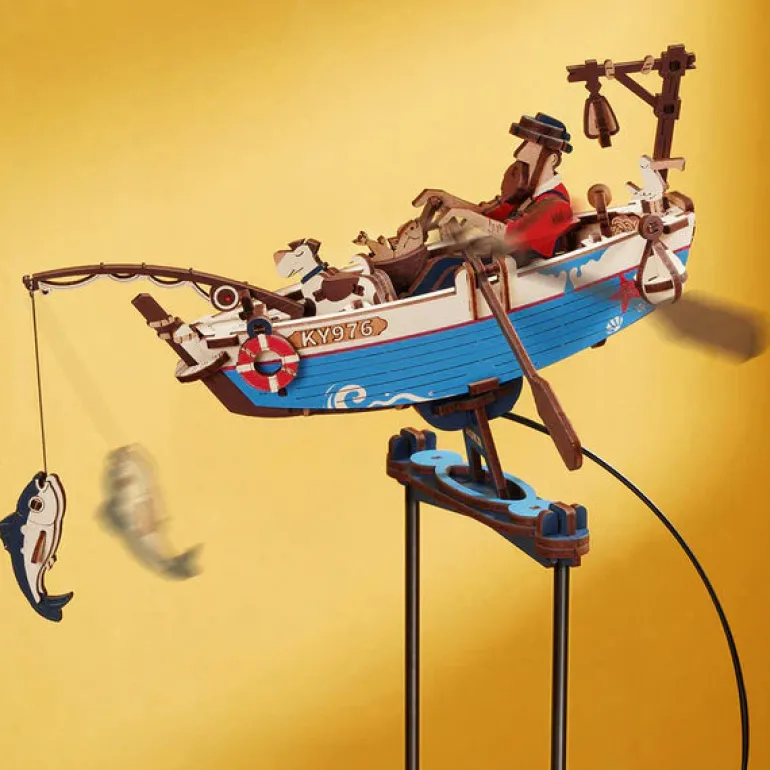 Bobbing on the high, salty waves is the Ocean Fisher, a DIY 3D puzzle and pendulum toy from ROKR. Watch him struggle to keep his catch while keeping balanced with the help of gravity and the smarts of clever engineering.