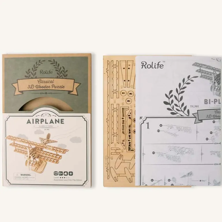 Robotime Rolife Bi-Plane TG301 DIY Wooden Toys 3D Puzzle