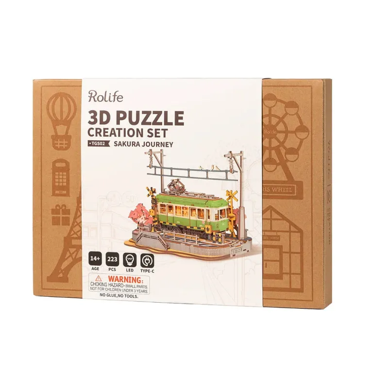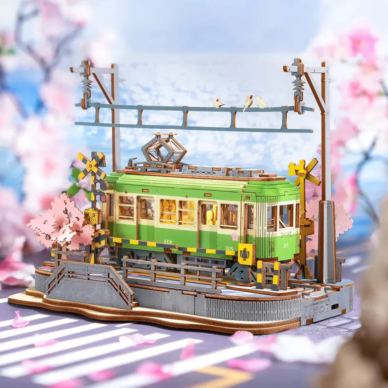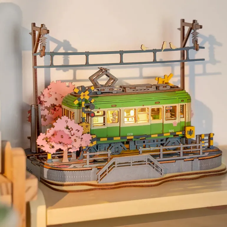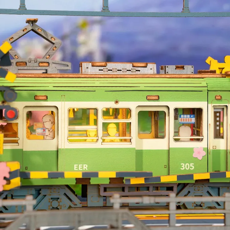 Sakura Journey replicates the Enoshima tram and creates a romantic scene. With the easy-insertion design, it can be finished with no use of glue. Power on it by the Type-C port, and it can be lit up with 6 LED bulbs.