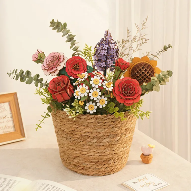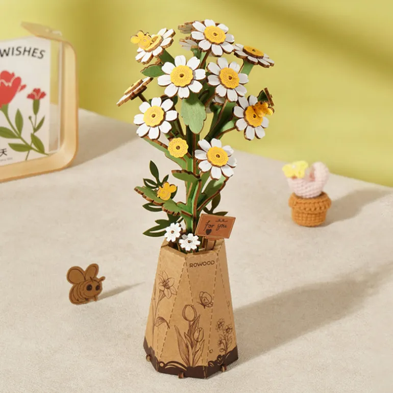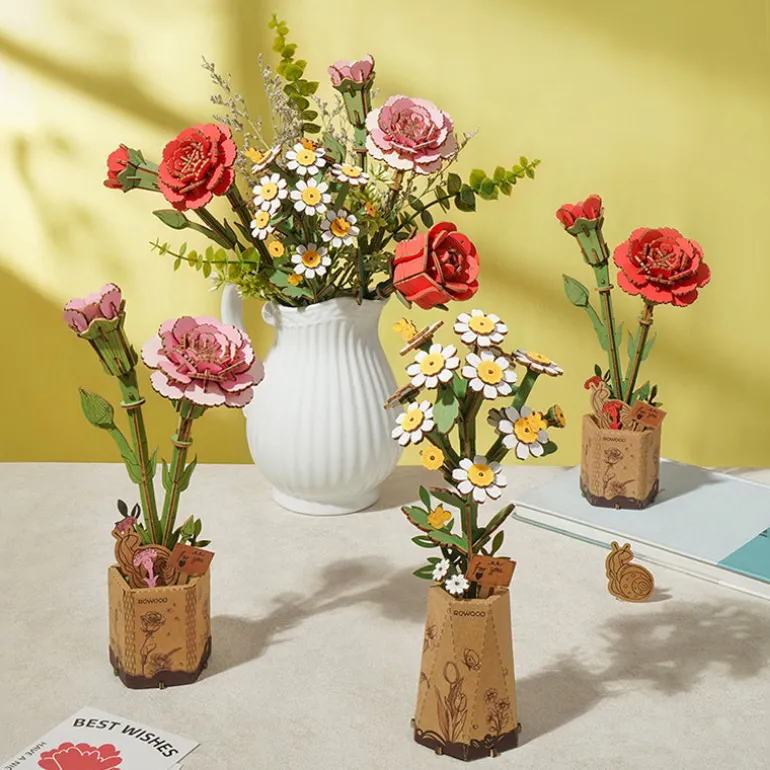 With its flexible stem, you can either put it in a flowerpot or pair with other flowers in the Wooden Bloom Craft series to make a bouquet in a vase.