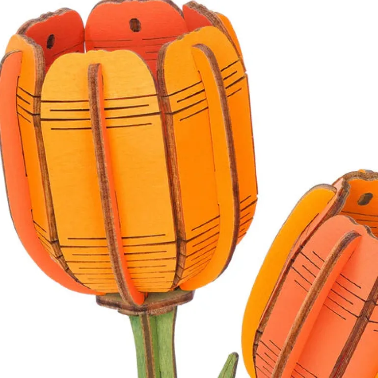 Are you also a fan of orange? Good news – build a wooden model kit of orange tulips!