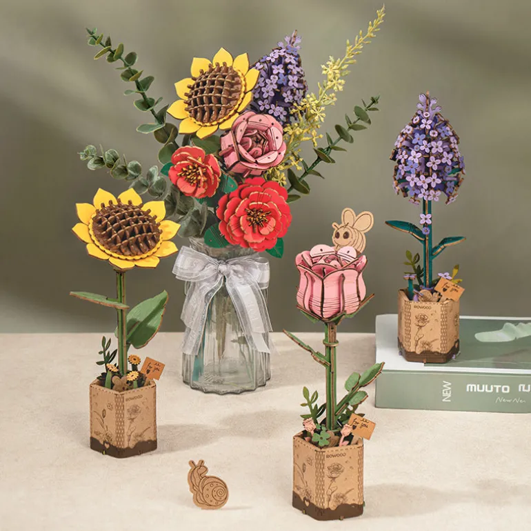PINK ROSE MODEL- With its realistic wooden design and kraft flower pot, the pink rose is the perfect choice for those seeking a distinctive and meaningful gift.