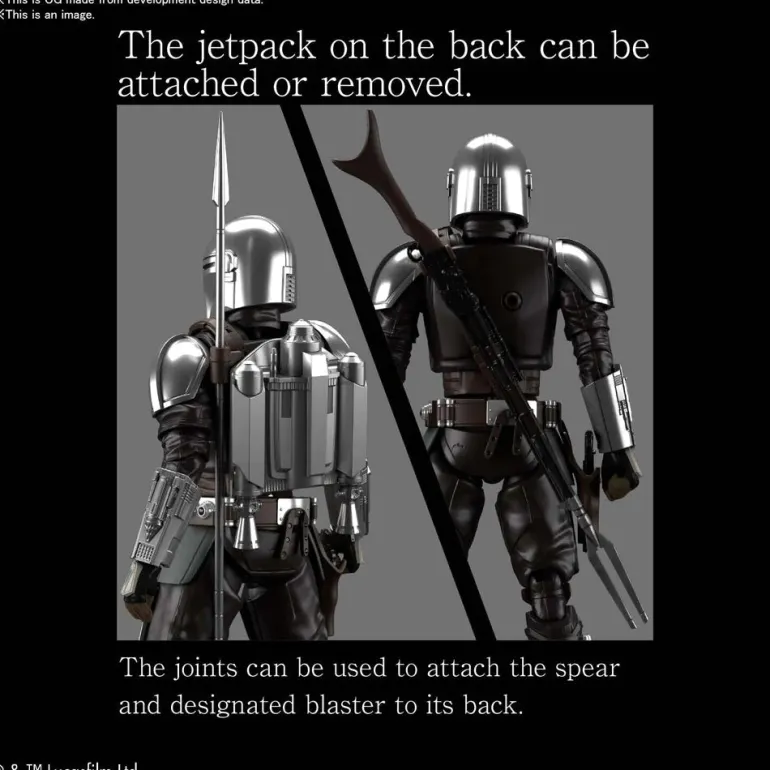 – The jetpack on the back is removable. By using a joint, it is possible to attach a spear or a special blaster to the back.