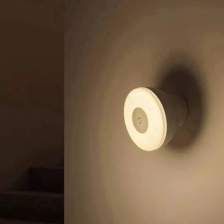 The angled base of the Mi Motion-Activated Night Light 2 can be easily positioned on bedside tables and other tabletops, and the base’s custom adhesive lets you firmly secure it by staircases and corridors, at the corners of beds, on bathroom walls, beside your child’s bed, inside a closet or cupboard and many other places. - Rotates 360o for diffuse lighting – Completely adjustable, to perfectly light every corner