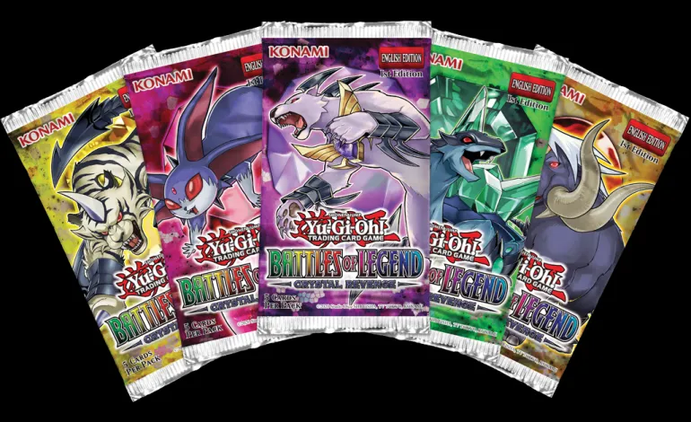 The all-foil Battles of Legend: Crystal Revenge* booster set introduces new, never-before released cards from the Yu-Gi-Oh! animated series ranging from the original all the way through Yu-Gi-Oh! VRAINS!