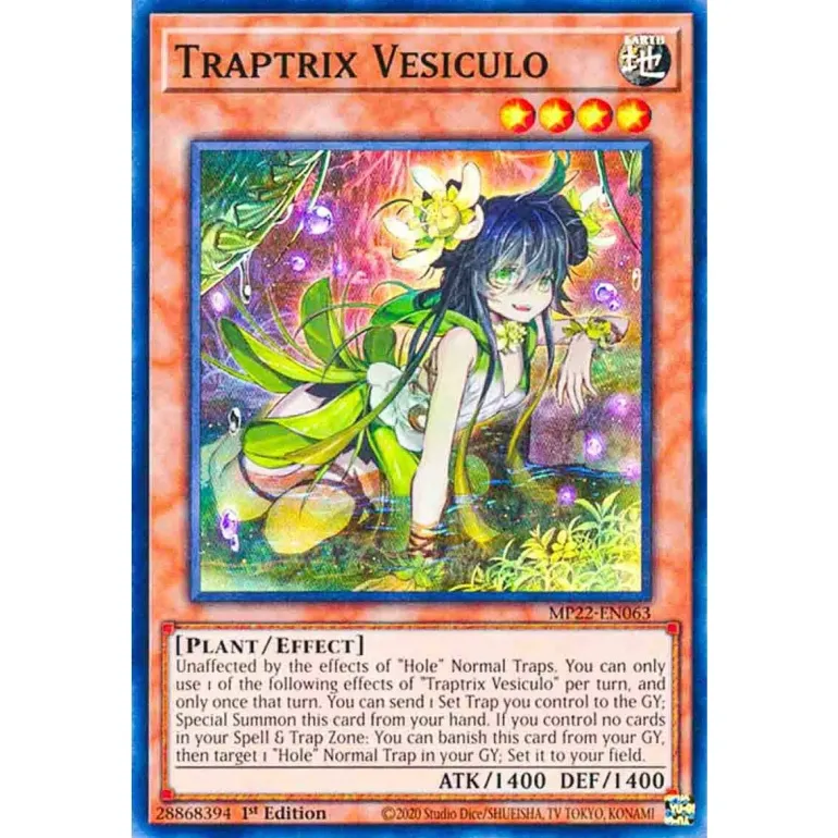 ‘Watch your step, the footing is treacherous and full of “Trap Holes” in a new Structure Deck featuring Traptrix*! The popular “Traptrix” strategy from Yu-Gi-Oh! MASTER DUEL now has its own Yu-Gi-Oh! TRADING CARD GAME Structure Deck! The “Traptrix” theme is comprised of EARTH Plant and Insect-Type monsters that may appear cute on the surface, but the closer you get the more you’ll find that they’re truly nefarious. This strategy revolves around “Traptrix” monsters that help you Set powerful “Trap Hole” Trap Cards that can drop your opponent’s monsters right out of the Duel! In this Structure Deck you’ll find key “Traptrix” and “Trap Hole” cards from the past alongside powerful brand-new cards! The new Structure Deck featuring Traptrix also gives you another chance to pick up iconic Trap Cards and many “Trap Hole” cards! Lure your opponents to a lovely feast, where going back is not an option.